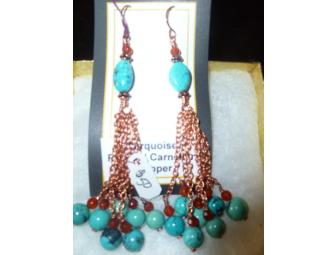 Handcrafted Earrings of Turquoise, Faceted Carnelian, & Copper. Designed and created by "Sheaz Jewelry" of Tuscon, AZ.