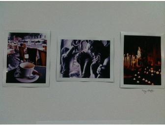 Three mounted, unframed polaroids made from slide film taken in Paris, France. Photographs taken and printed by second year medical student, Molly Shaffer.