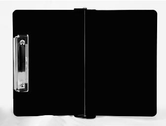 Full size medical pocket clipboard from White Coat Clipboards (glossy black clipboard with black sticker). Unique design allows you to fold the clipboard in-half for storage in your pocket. Made of lightweight aluminum with the ability to carry 15 pieces of paper without a crease while at the same time securing all your medical information inside. Carry extra history and physical exam forms, SOAP notes or progress note pages without worry of losing your data. The clipboard also functions as a quick medical reference guide with detailed day-to-day information such as EKG interpretation, acid/base determination, lab values and much more.