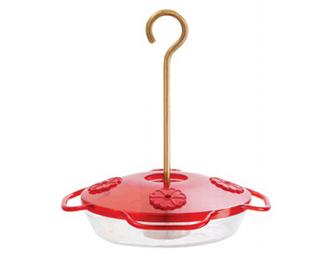 Little Flyer Hummingbird Feeder. Mount the Little Flyer among flowers with a Garden Pole or hang it by the brass rod that is included, 5 7/8" diameter, 3 ports, 3/4 cup capacity.