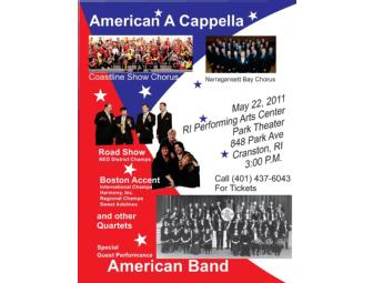 2 tickets to "American A Capella" at The Rhode Island Center for Performing Arts on May 22 at 3pm