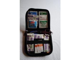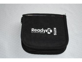 This first aid kit from Ready Kits Comfort Gear contains band-aids, antibiotic ointment, scissor, tweezer and antibacterial wipes in a convenient canvas carry case that fits in any backpack or purse.