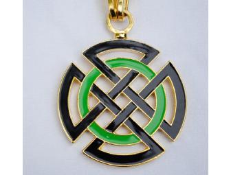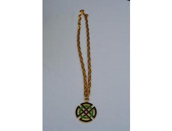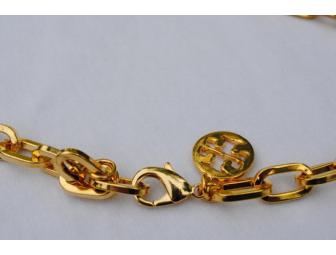Gold Tory Burch Fortune Necklace. Gold chain is approximately 32". Gold and navy medallion is approximately 2.25". Clasp can close on any of the links giving flexibility in the chain length to update your wardrobe.