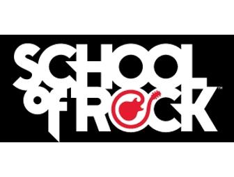 The "Gift of Rock" from School of Rock West L.A. Includes one month of tuition -- good for one private lesson and one 90-minute rehearsal/"group jam" for a total of 4 lessons and 4 rehearsals. Includes fashionable tee as well!