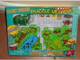 Fit the pieces of the track together like a puzzle. The vehicle will run on and follow the track. Lots of fun in a dinosaur theme!