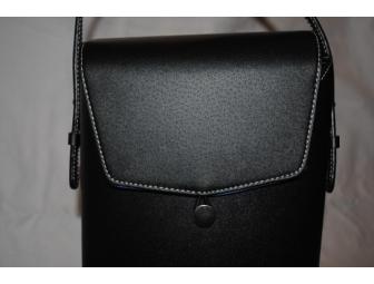 Bring your favorite bottle of wine with you in this black leather carrier from Deborah Price Gifts! Comes with a corkscrew in a convenient side pocket. Perfect for picnics, dinner parties and byob!