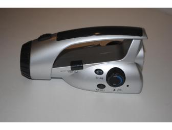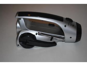 See the light! This grey 3 LED flashlight and FM scan radio with a 6V charger and a crank generator to recharge will keep you safe in the darkest of nights. Approximately 3" W x 7" L.