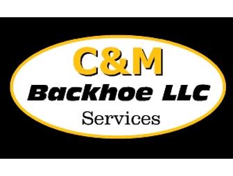 Certificate entitles holder to a $350 discount towards an 8 hour day of backhoe services (i.e., regular rate of $750 discounted to $400). Donated by C&M Backhoe LLC of Canton, MA.
