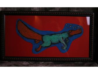 This wonderful platypus would love to become part of your family. Created with oil pastels, it measures 10x20 in a black frame.