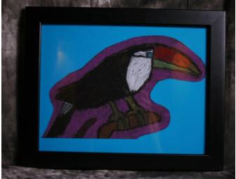 You can own this toucan! Oil pastels were used on this framed picture, measuring 10x13.