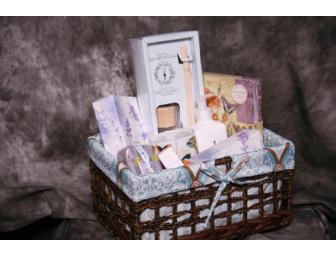 Mmmmm, lavendar. Includes an oil diffuser, pump hand lotion, body lotion, two soaps, candle, hand cream, and a journal.