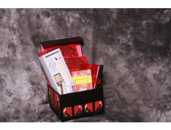 This red and black themed box has it all! Two red picture frames, two red and black journals, a Pocket Posh Word Puzzles book, an oil diffuser, and a candle.