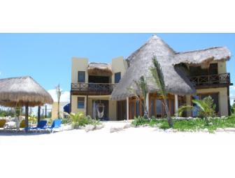 Stay in this beautiful beachfront villa in Tankah Tres - at Tulum, Mexico - for one week. Three separate en suite guest rooms sleep six with privacy and comfort. Tankah is positioned well for any number of day adventures to Mayan ruins, eco-parks, beaches and other vacation towns on the Riviera Maya, especially day or nighttime excursions to shop or dine in Playa del Carmen which is about 40 minutes north.