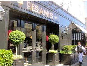 Enjoy dinner for two with wines paired by the sommelier team at this classic French brasserie in Cow Hollow. You'll find favorites like a steak frites with the best french fries around, a grand selection of fresh oysters, clams and mussels on the Plateau and special hard-to-find dishes like escargots, salt cod fritters, twice baked blue cheese souffle and steak tartare. Cafe des Amis and Chef Gordon Drysdale were included in the Michelin Guide's list of Bib Gourmand Picks just months after opening. The Bib Gourmand award highlights the Michelin inspectors' favorite and affordable gems in the San Francisco area. For more information, visit the restaurant at 2000 Union Street or the web site at www.cafedesamissf.com or call 415-563-7700.