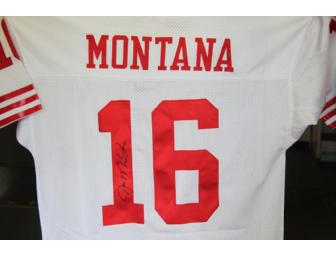 Joe Montana #16 jersey, signed on the number by this Bay Area sports legend. Perfect to frame or wear!