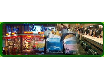 8 gift cards valued at $5.00 each to Mel's Drive-In. Groove to the sights and sounds of the 1950s at the ever-popular Mel's. Burgers, shakes, fries: it's every kid's favorite stop!