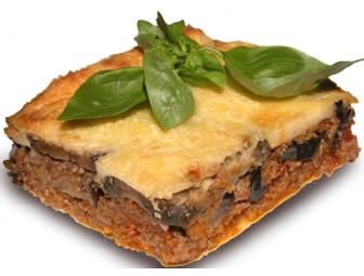 You are bidding on a home-cooked Greek dinner for 8, which includes appetizer, moussaka, bread and baklava dessert
