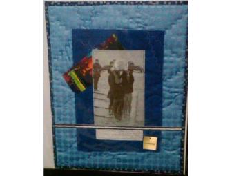 A lovely fabric collage 14" x 11" with a meaningful quote about leadership. Created in blue tones