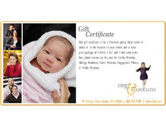 This gift certificate is for a One-hour photo shoot either in studio (located at 99 Factory Street, Nashua, NH or at the location of your choice and a basic print package of 1-8x10, 1-5x7 and 1-4x6 color print.