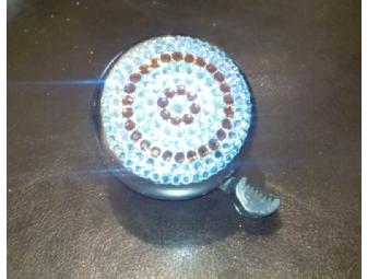 Bling, Bling, Bling! Gorgeous Bike Bell with lots of sparkle! Made with Genuine Swarovski Crystals by fabulous Newport El Mom, Abbey Hill. Brown and Blue crystals. Universal Clamp to Fit All Handlebars. Chrome Plated Bike Bell. Comes Beautifully Packaged!