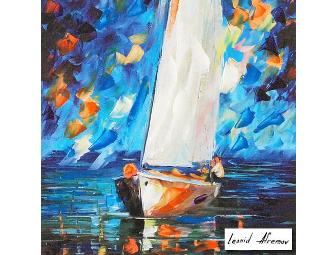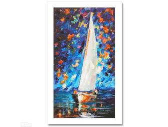 NOW IS YOUR CHANCE TO OWN THIS EXQUISITE MASTERPIECE BY THE RENOWNED LEONID AFREMOV! With intense, vivid colors and free brush strokes, Leonid Afremov creates paintings that are captivating in their emotional intensity. "White Sail" is an extremely limited edition hand-embellished giclee on canvas, numbered in verso out of only 25 with Afremov's authorized signature. Includes Certificate of Authenticity!
