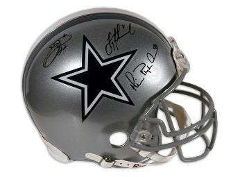 Troy Aikman, Michael Irvin and Emmitt Smith Triple Signed Dallas Cowboys Helmet