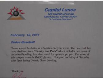 Not good Friday & Saturday after 7pm during Cosmic Glow Bowling. Winning Bidder is responsible for pickup from TBB or for shipping costs.