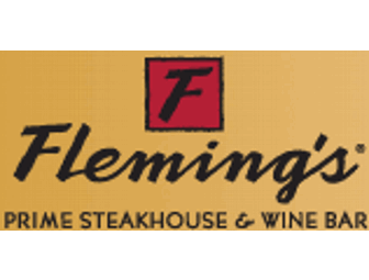 Two $50 gift certificates to Flemings. Boston's Fleming's Prime Steakhouse & Wine Bar is an ongoing celebration of exceptional food and wine. Indulge yourself with the finest aged prime beef and an inventive array of fresh seafood, chops, generous sides and salads, and tempting desserts.