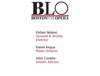 Enjoy two Price Section B Orchestra or mezzanine tickets for opening night of Boston Lyric Opera's 2011-2012 Season, Verdi's Macbeth. Boston Lyric Opera (BLO) is New EnglandâA?A?s largest opera company. Founded in 1976, BLO is recognized for its artistically excellent productions of a diverse repertoire that entertain and inspire audiences and feature emerging operatic talent.