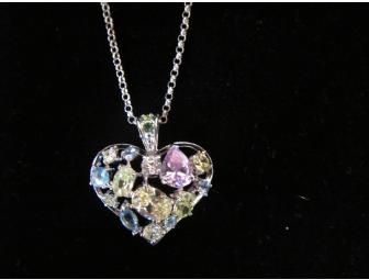 Gem/Diamond Pendant: 16" White gold chain and pendant inset with diamonds and gems. Made in Italy.