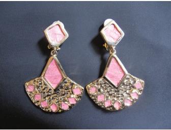 Clip-On Earrings with Pink Snakeskin & Hammered Gold Plate. Shipping charges may apply.