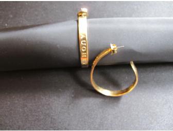 Silverplate Pierced Open Hoop Earrings with "Heart of Gold Gold Digger" Inscription