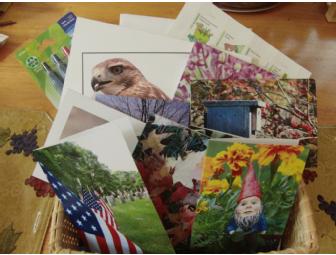 16 note cards featuring original pictures by local photographer in a basket with pens and postage included !