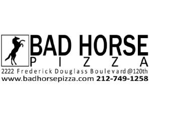 BAD HORSE PIZZA is a casual but sleek new pizzeria on Restaurant Row in Harlem NYC. We specialize in pizza but we also have pasta and salads. We have our own custom house pies, but also serve your favorite regulars. Our beer and wine license is pending so If you enjoy beer or wine with your pie, you are welcome to bring your own. OUR CRUST is made from flour, yeast, nyc water, and imported extra virgin olive oil. OUR CHEESE is a 100% natural cheese blend with fresh mozzarella chunks, sprinkled with Parmigiano Reggiano and fresh Palestinian basil clippings at finish. OUR SAUCE is simmered and mashed in-house. We use San Marzano plum tomatoes, garlic, oregano, imported extra-virgin olive oil, salt and pepper.