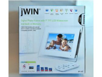 Once you've taken unforgettable photos, you'll want to display them in the high style they deserve. That's easy with your new jWIN Digital Photo Frame. This stylish aluminum frame displays digital photos on a 7" widescreen, and reads SD, MMC, MS and CF cards.