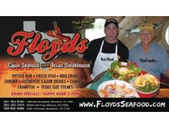 Floyd's a great tradition of Cajun seafood and Texas Steaks. The barbeque crabs are Floyd's favorite, and the boiled crawfish are the reason they are on the map for great food!