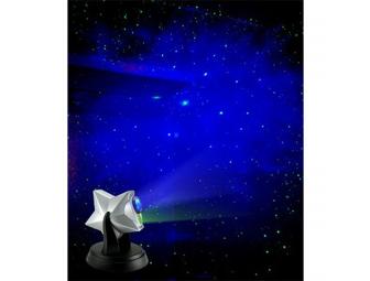 When you use the laser star projector you will be bamboozled with star rapture. It's a unit about 10inches tall that projects a combination of green laser stars and blue (slightly ultraviolet-ish blue) clouds onto your ceiling, walls, pets, etc. Both the clouds and the stars are constantly moving and morphing, just like a proper Universe should. The Laser Stars Projector utilizes a state of the art Diode Pumped, Solid State (DPSS) green laser combined with custom developed multiphase diffractive holographic optics, super luminous diodes and precision motors to produce the laser stars effect.