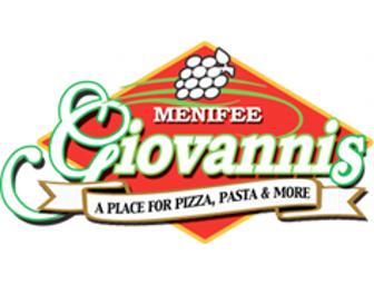 Enjoy a $20 Gift Certificate at Giovannis on 26900 Newport Rd., Menifee. A Great place for PIZZA, PASTA, STEAK, SEAFOOD and more!