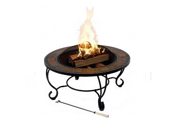Enjoy a Garden Treasures 35" steel fire pit with a slate table top and beautiful pattern.