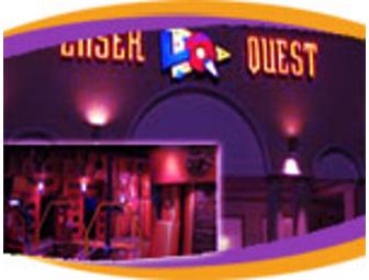 Each Laser Quest is an entertainment center for the young and young at heart. The game is fast moving for those 5 to 85. With the world's most advanced laser equipment available, Laser Quest is played in a large, multilevel arena with specialty lighting, fog, and heart pounding music. Players use their lasers to tag opponents and score points.