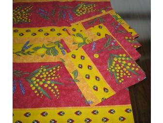 Alliance member Mireille Nett, who operates Les Couleurs de Provence, is one of the most popular vendors in French markets around town, including of course Bastille Day! She offers this set consisting of a square tablecloth (70" by 70") and 4 matching napkins; 100% cotton with anti-stain treatment; featuring mimosa, lemons and lavender that will all serve to remind you of Provence! Visit Mireille on her web site: www.lescouleursdeprovence.com.