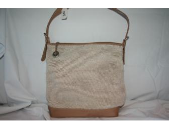 The Sak brings you this weave and acrylic purse in tan and cream. Signature Sak material in durable tight-weave pattern. Adjustable tan acrylic strap, tan interior.