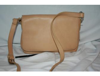 Earth tone Charter Club purse is subtle and practical. Pull-out coordinating wallet is in the bag when you need to lighten your load. Silver accents.