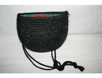 Black woven purse is casual and fun. Roomy yet petite, this purse is both sporty and practical!