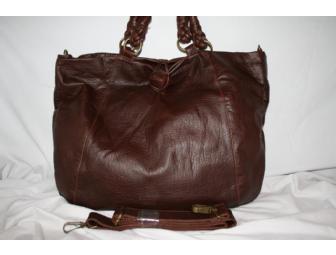 BCBG Maxazria TEX Brown Leather Oversized Tote