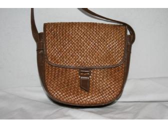 This Italian vintage Susan Gail handbag comes in tan thatch material with brown leather. Interior zipper pocket, magnetic snap enclosure hides a slit pocket on the front. Shoulder strap is adjustable.