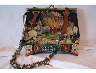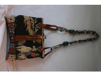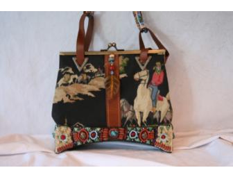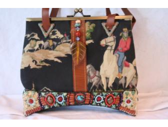 Be prepared to fall in love! This adorable and one-of-a-kind piece from renown artist and designer Mary Frances features a western theme complete with beads, stones, and jewels. Red clean lining.This bag was previously owned and hardly used because its condition is superb. Since 1990, Mary Frances, a San Francisco Bay area designer, has been creating "works of art" with her unique blend of elegance and whimsy. Utilizing luxurious fabrics, exotic precious stones, beads and trim work, each Mary Frances Handbag is a treasure that is individually crafted by skilled artisans who pay close attention to detail and quality.