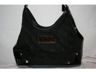 XOXO black handbag trimmed in patent leather and dressed in signature black fabric. Silver signature XO studs dress up the patent leather, signature XO lining is extra clean...This bag has never been used!