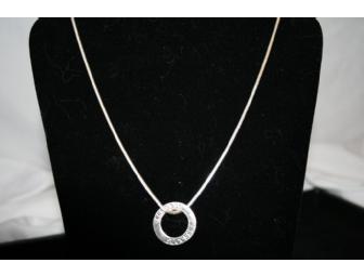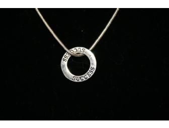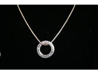 This sterling silver necklace features a silver circle pendant that has the word "SUCCESS" imprinted around it twice and on each side. Inspire someone today with this lovely gift or give your self a simple yet strong daily reminder of achievement and confidence!