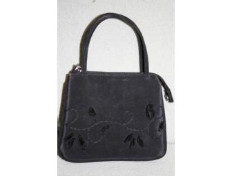 Petite black purse; perfect for a special evening out! Mirror attachment hides neatly inside!